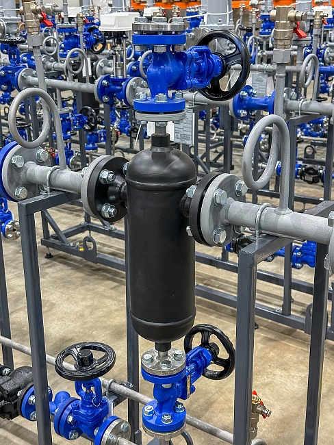Для объекта спроектированы и изготовлены блоки обвязки приточных установок с учетом рабочих параметров системы и требований к эксплуатации паровых линий.